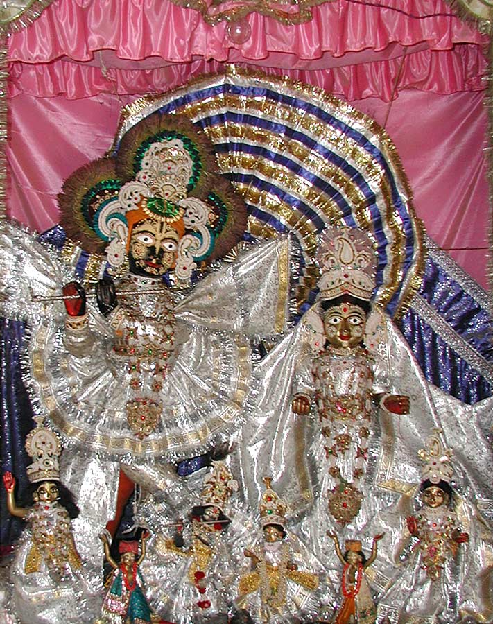 Madana-gopala smiled and replied, “I am forever under Your control. Without You, My pastimes are incomplete. I always reside with You. Kindly fulfill My devotee's desire by offering the Deity to him. Remember what has been previously described. This Deity is nondifferent from the painting that Shri Vishakha made. Shri Radhika Herself became enchanted on seeing that painting. That transcendental painting is still there in Nikunjavana. Go there, and without doubt You will easily find it. Take that picture to Shantipura and deliver the living entities by inaugurating its worship.”